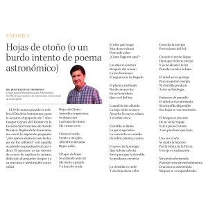 Los invitamos a leer este poema astronómico sobre el otoño, que recién comienza, dedicado a un pequeño de Renaico, escrito por el astrónomo colaborador de la Fundación Chilena de Astronomía Roger Leyton Thomson.