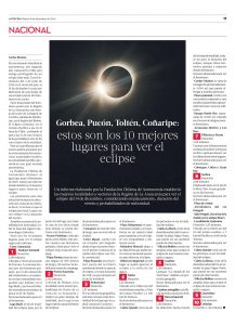 La Tercera nuevamente publica nuestro informe sobre los mejores lugares para la observación del eclipse. Puedes leer la nota aquí, puedes leer el informe en español aquí y en mapudungún aquí.