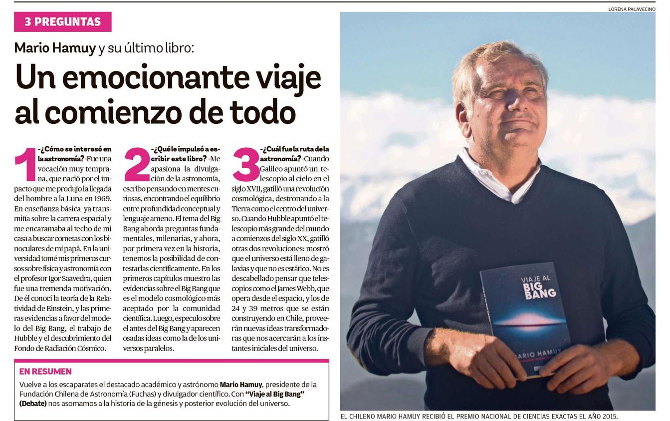 Les compartimos este breve cuestionario a Mario Hamuy, sobre su libro Viaje al Big Bang, en los medios regionales de El Mercurio.